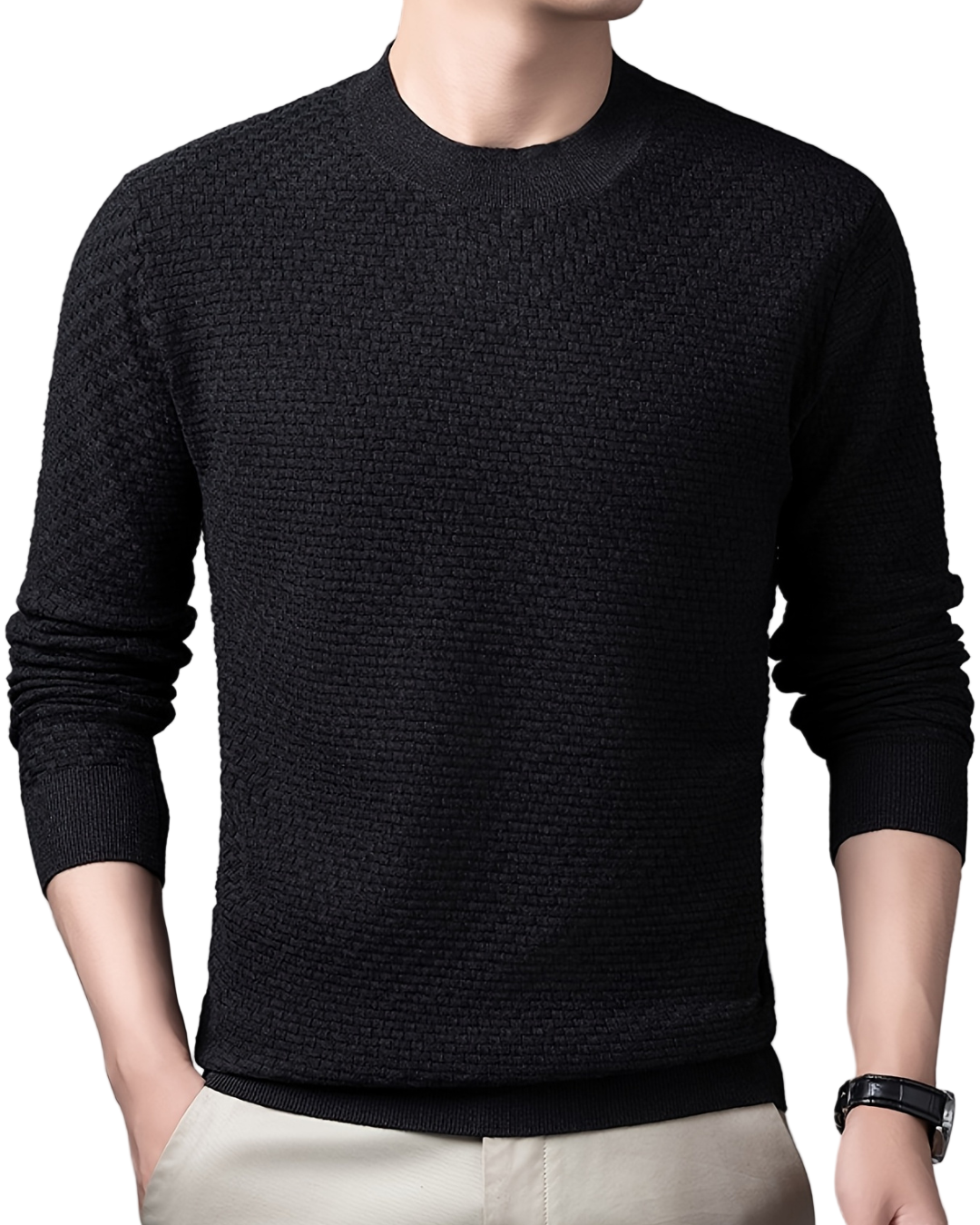 Men's Crewneck Sweater with Textured Knit Pattern and Long Sleeves