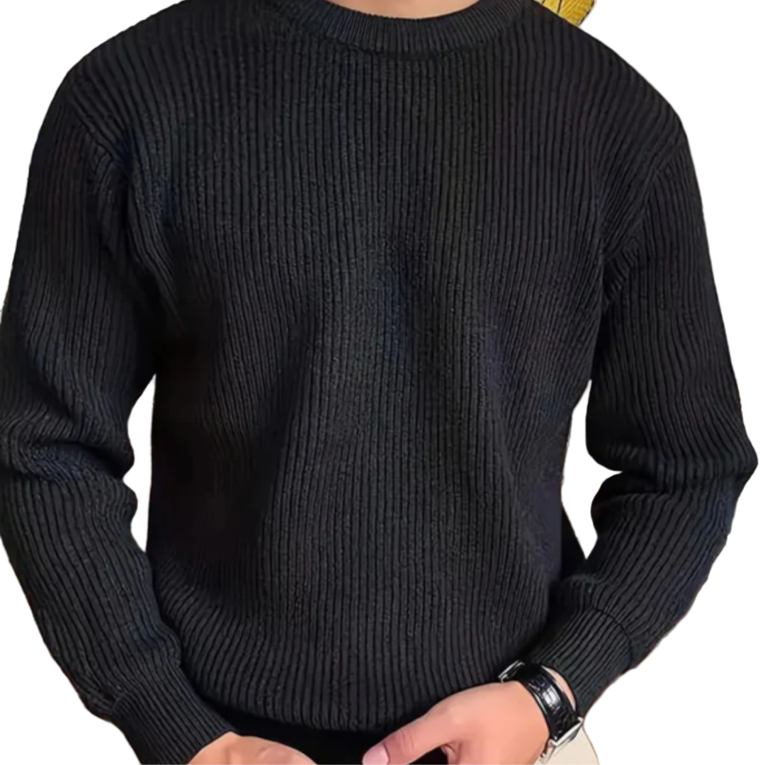 Men's Crewneck Sweater with Vertical Ribbed Knit Texture