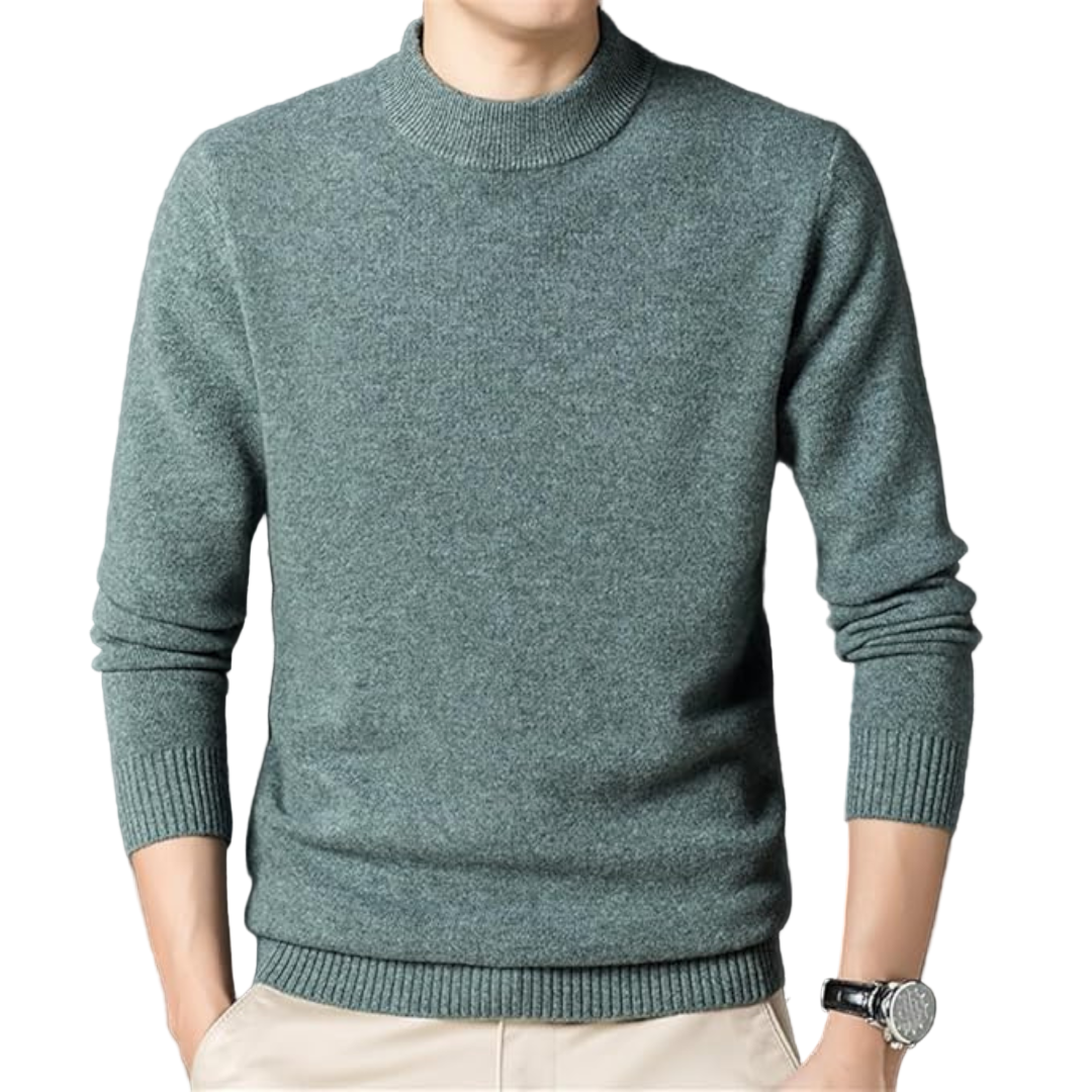 Men's Mock Neck Sweater with Ribbed Cuffs and Long Sleeves