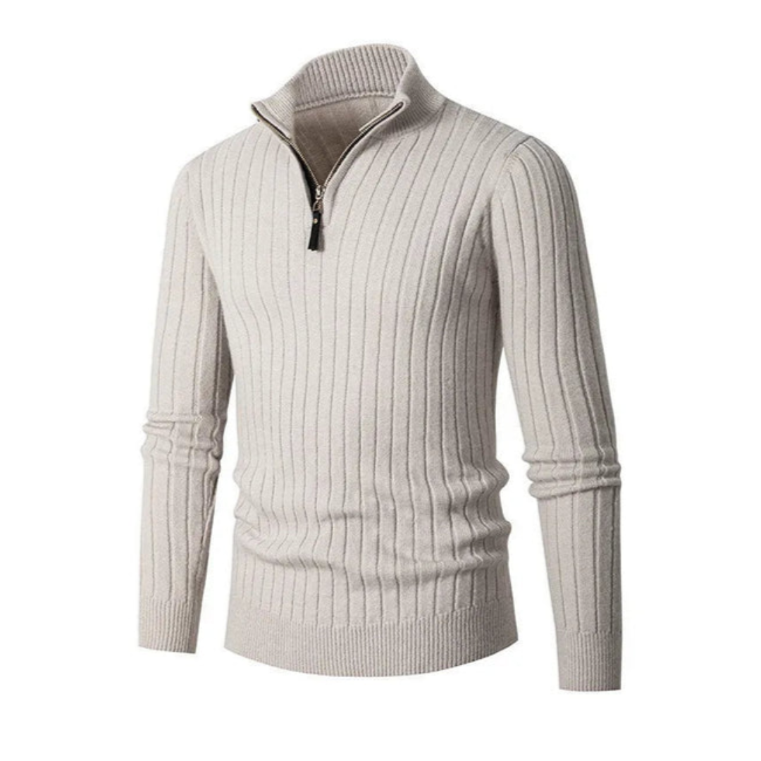 Men's Quarter Zip Sweater with High Collar and Ribbed Knit Pattern