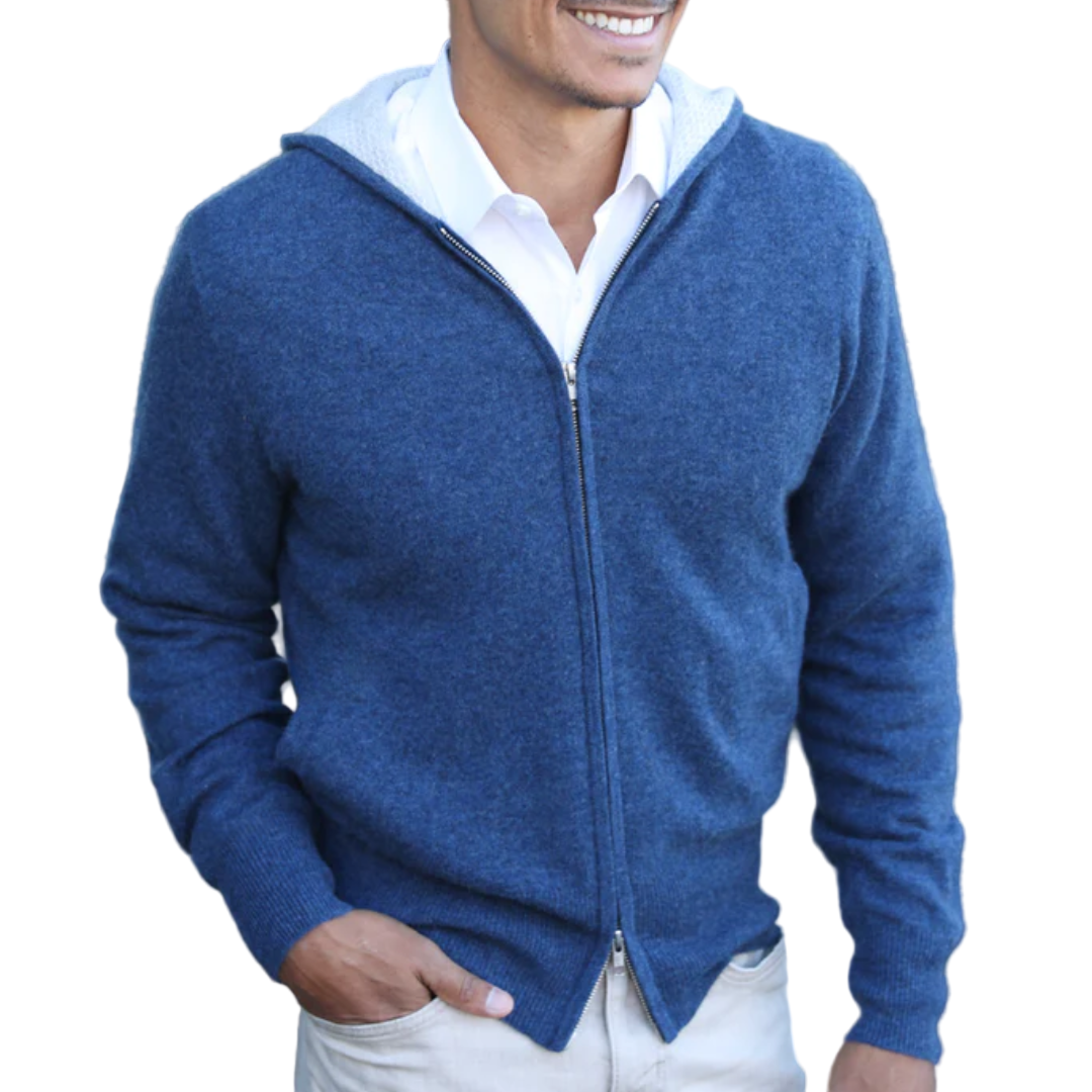 Men's Zip Up Hoodie with Attached Hood and Ribbed Cuffs
