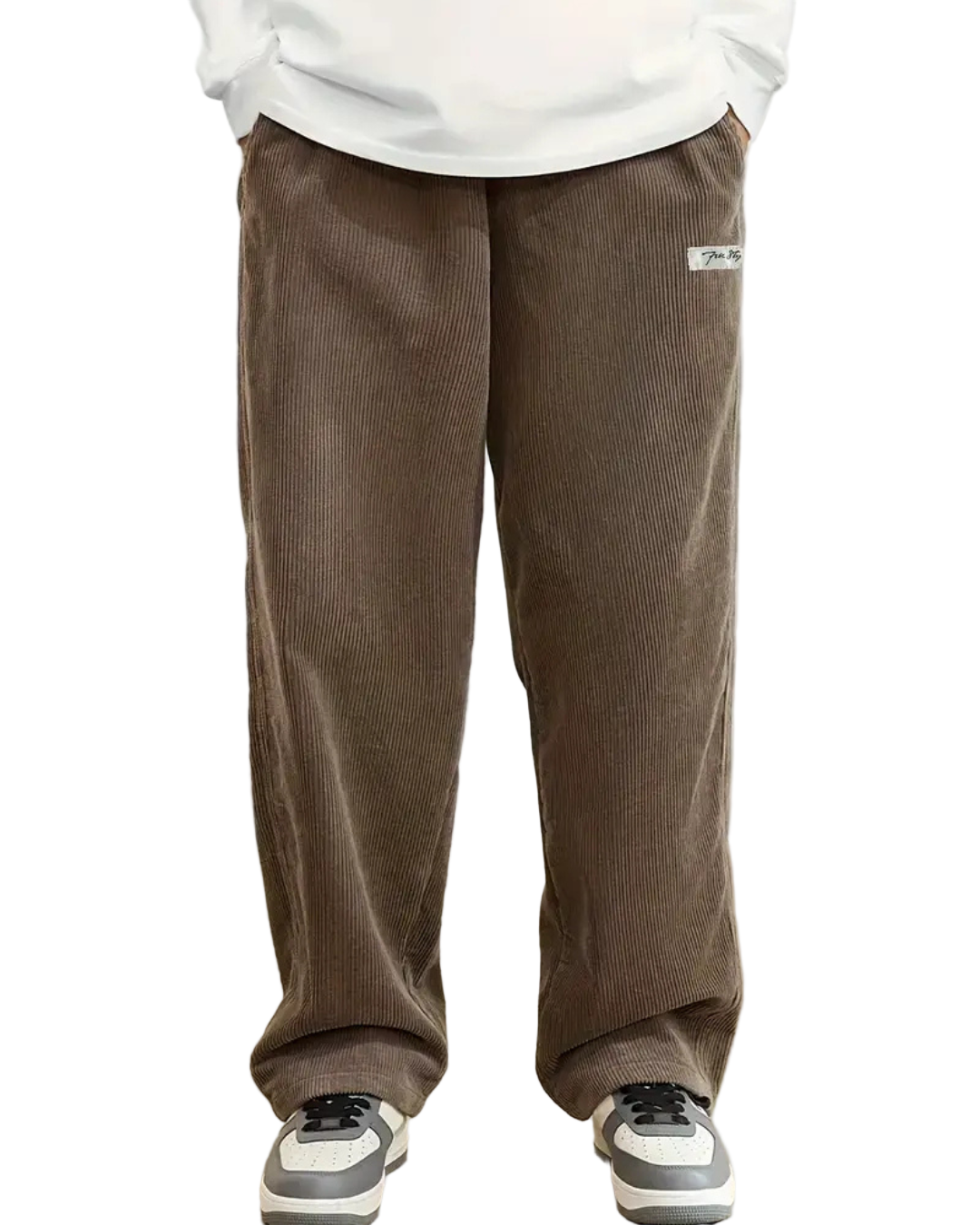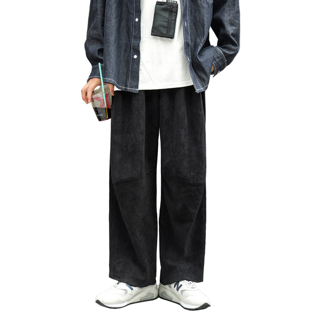 Men's Wide Leg Corduroy Pants with Elastic Waistband and Front Pockets