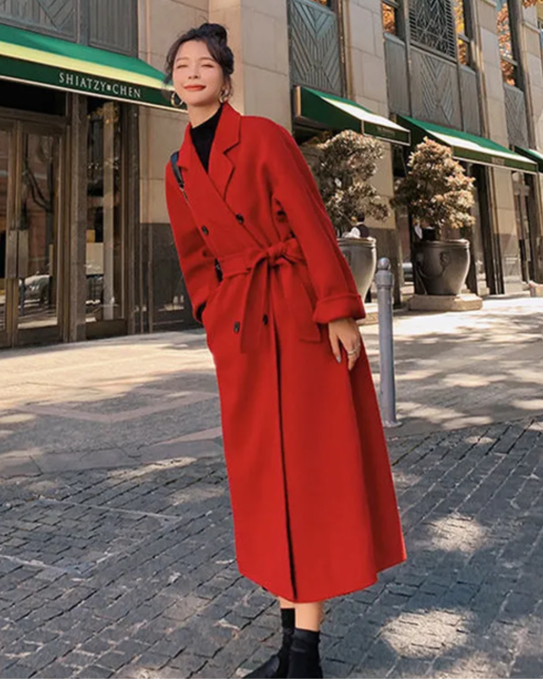 Women's Double Breasted Trench Coat with Notched Lapels and Waist Belt